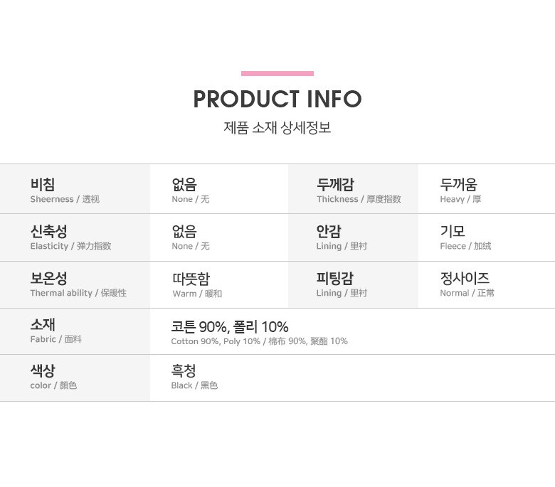 | 1. 제품 소재 (섬유의 조성 또는 혼용률을 백분율로 표시, 기능성인 경우 성적서 또는 허가서) | 별도표시 |