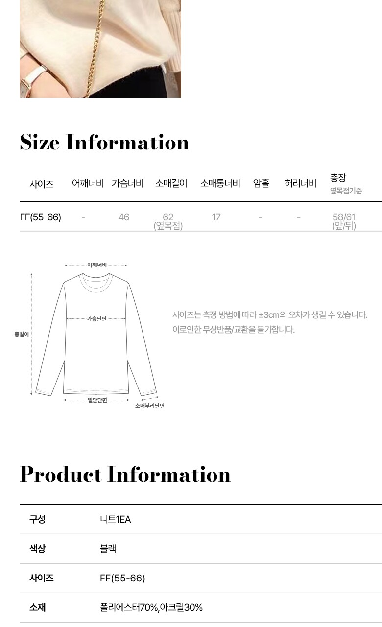 • 처음 배송된 상품상태와 다를 경우(세탁/착용 후 외출하신 경우) 반품이 불가합니다.