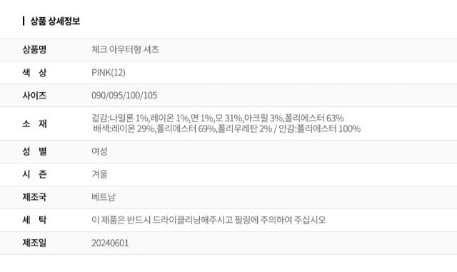 | 6. 세탁방법 및 취급시 주의사항 | 상품상세참조 |