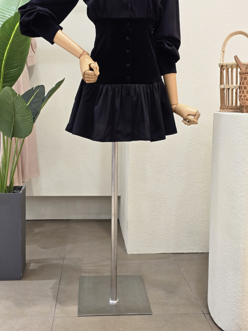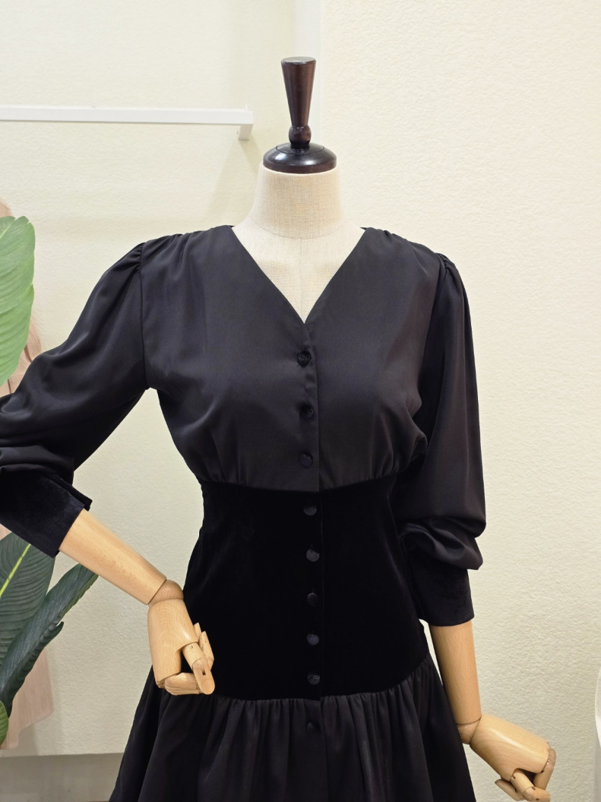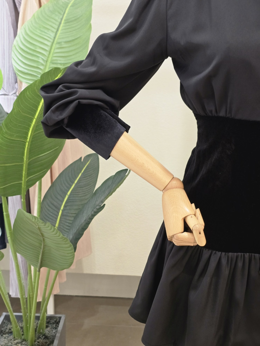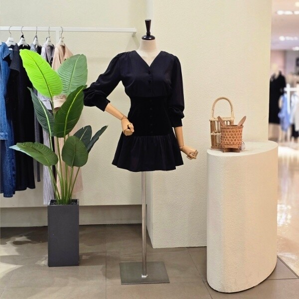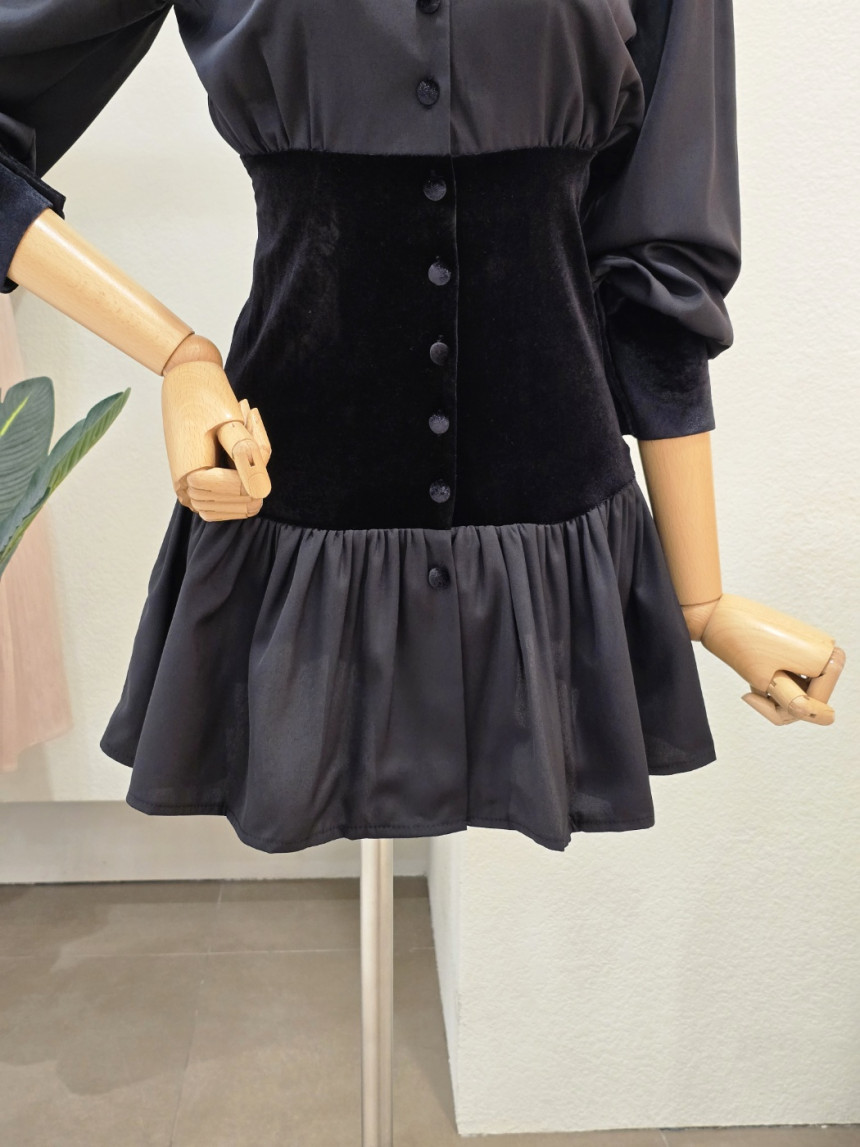 FW5J9OP5285_벨벳 포인트 브이넥 미니 원피스