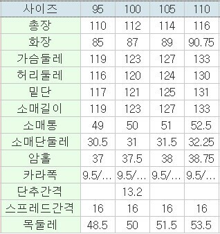 | 3. 치수 | 95,100,105,110 |