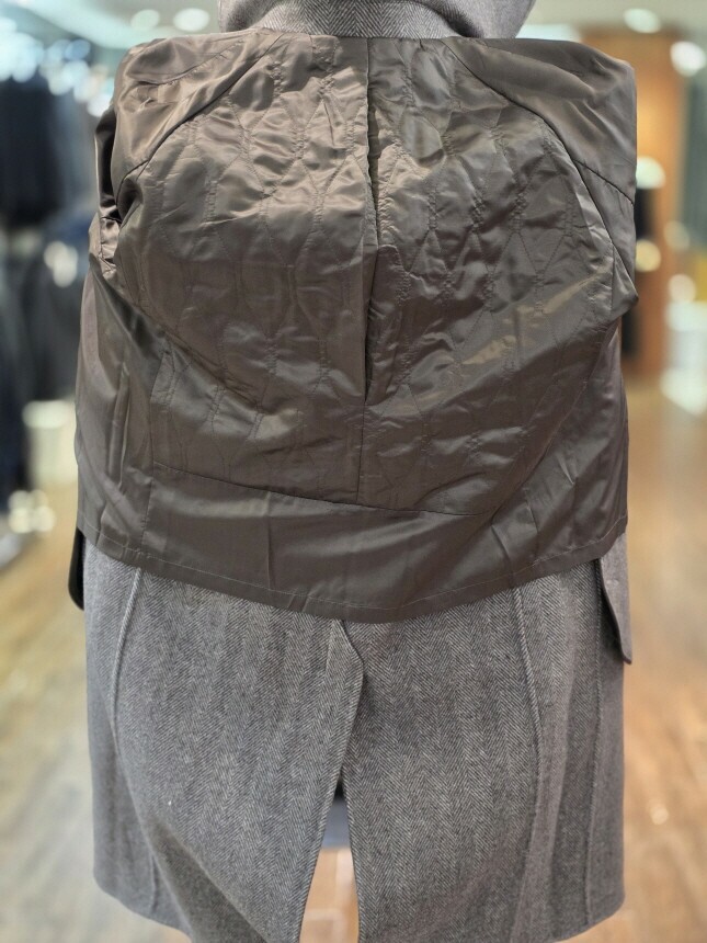 | 1. 제품 소재 (섬유의 조성 또는 혼용률을 백분율로 표시, 기능성인 경우 성적서 또는 허가서) | 겉감 : 모 85% , 나일론 10% , 캐시미어 5% 안감 : 폴리에스터 100% |