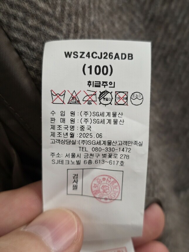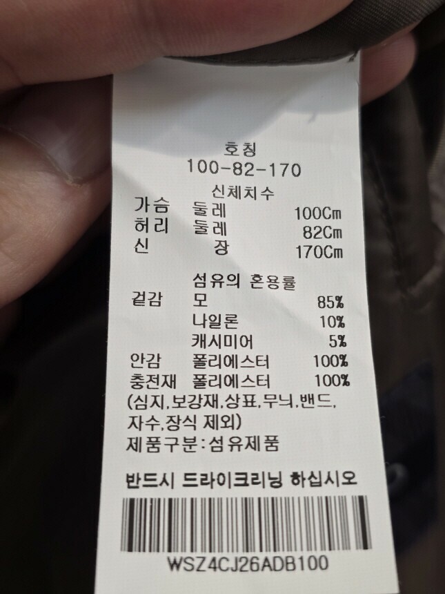 겉감 : 모 85% , 나일론 10% , 캐시미어 5%