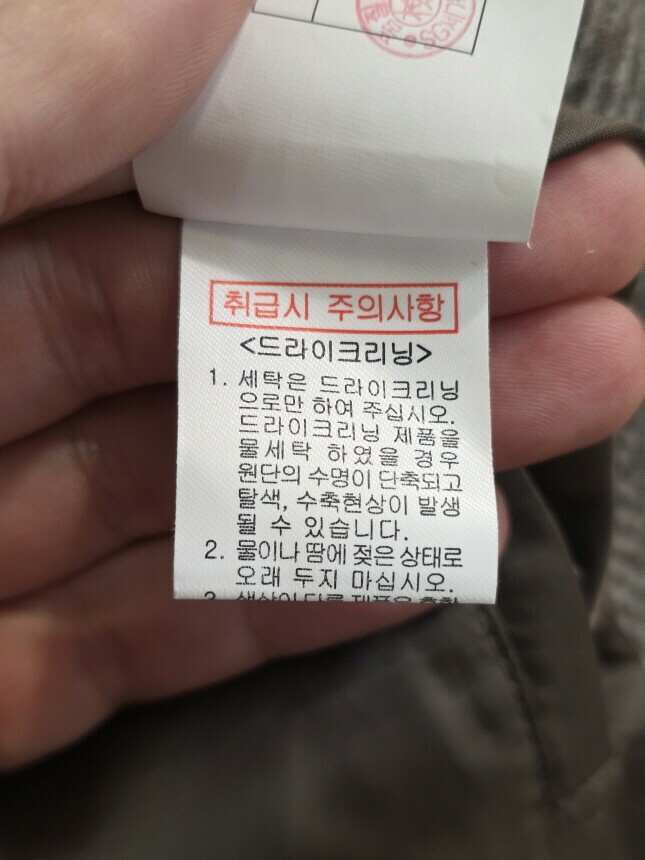 | 6. 세탁방법 및 취급시 주의사항 | 드라이크리닝 |
