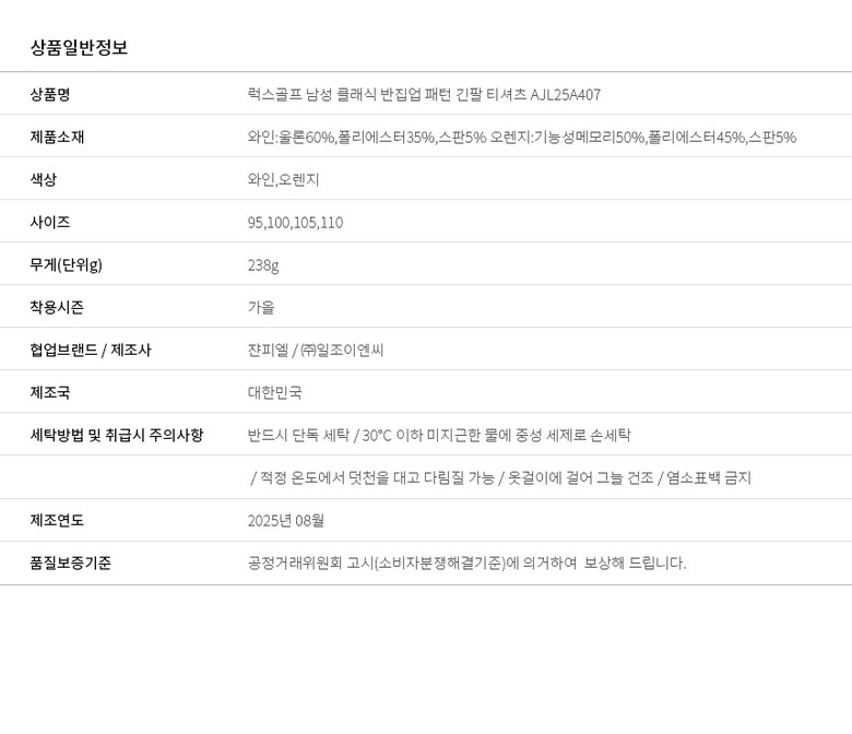 | 9. 상품별 세부 사양 | 상세설명참조 |