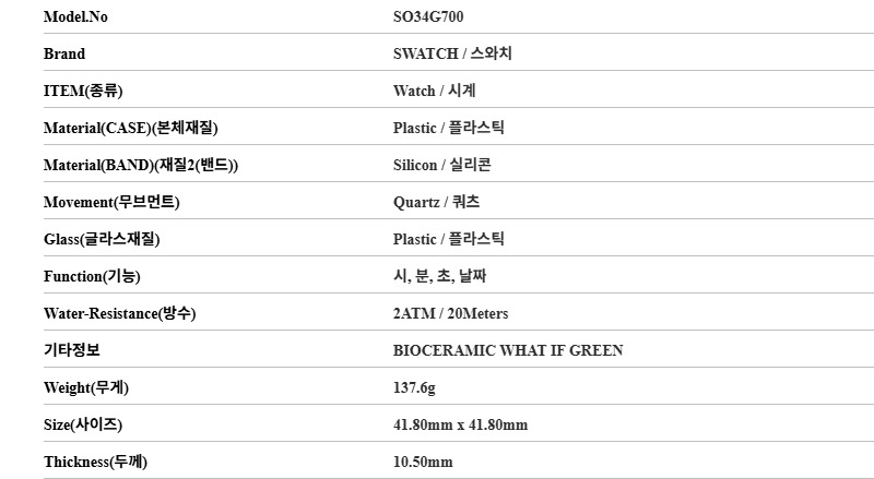 스와치 SO34G700 BIOCERAMIC BIOCERAMIC WHAT IF GREEN 여성 우레탄시계