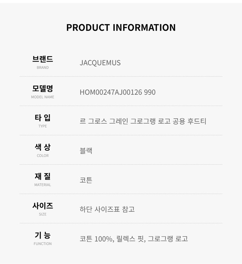자크뮈스 HOM00247AJ00126 990 르 그로스 그레인 그로그랭 로고 공용 후드티