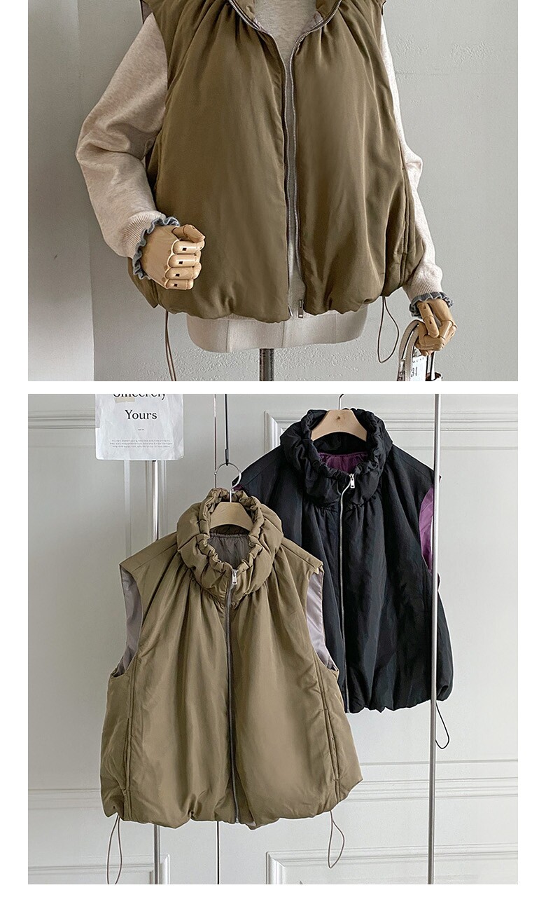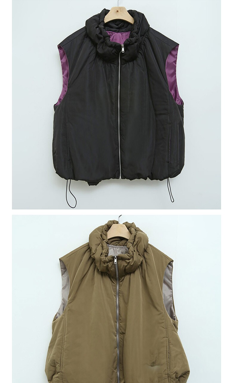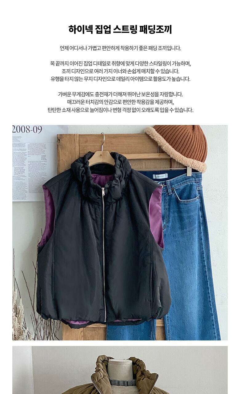 하이넥 집업 스트링 패딩조끼_PK2511PV001D