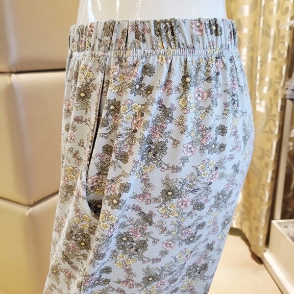 블루 톤 잔꽃 나염으로 여성스러운 분위기의 하의 입니다.