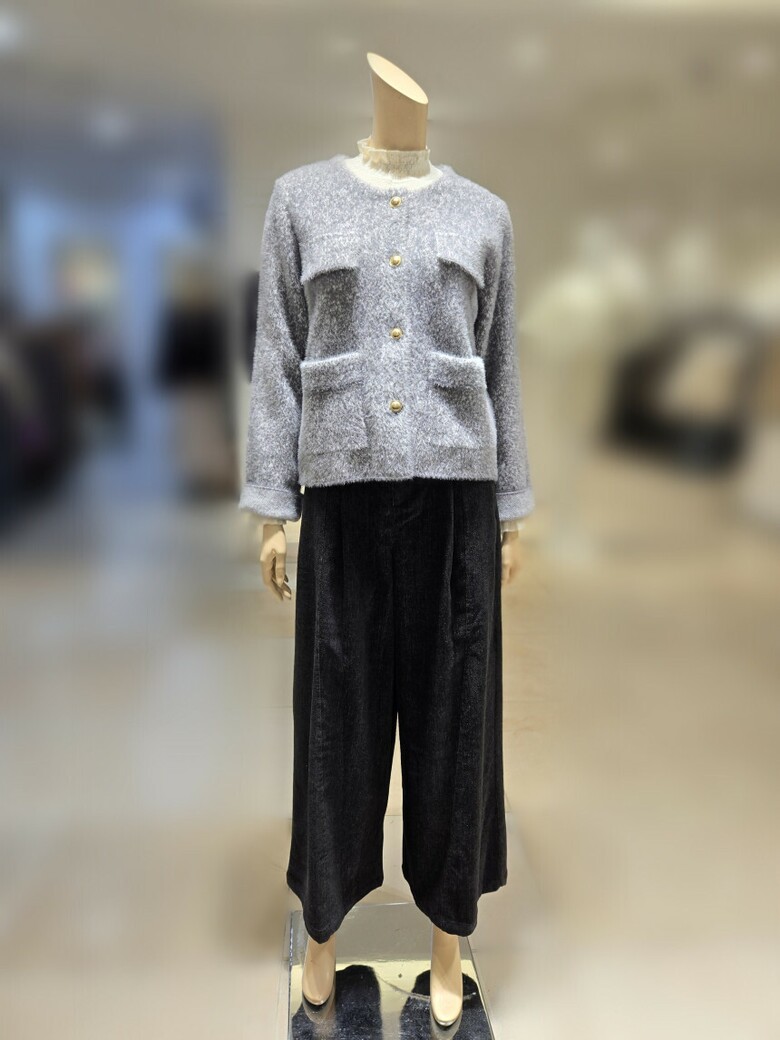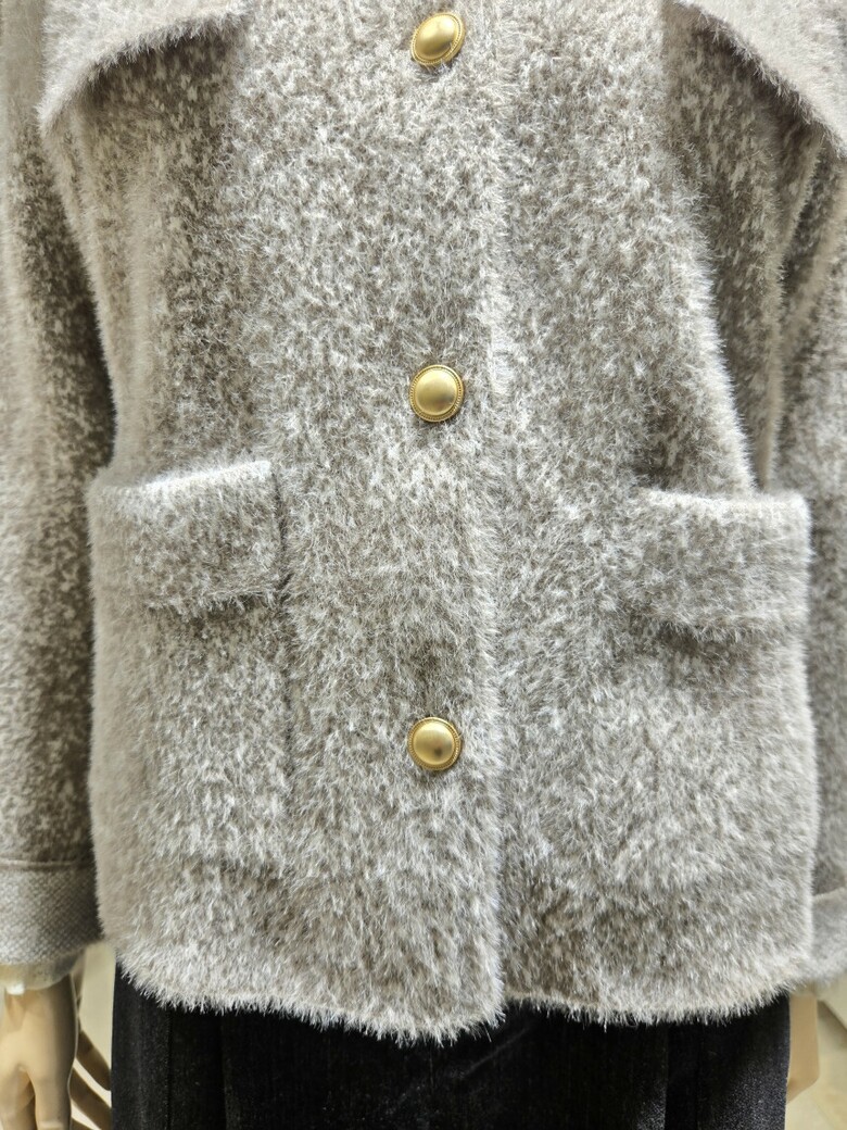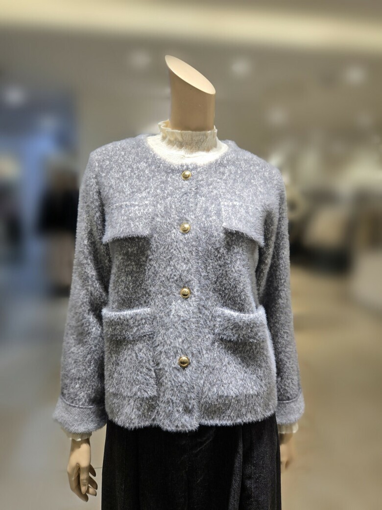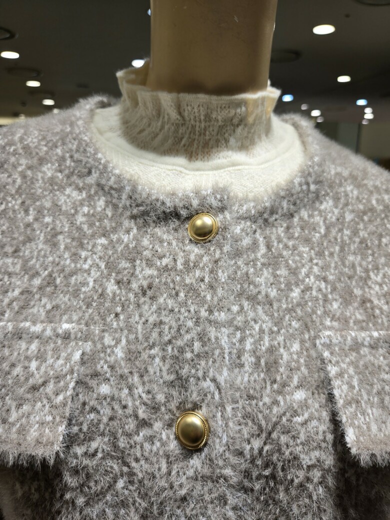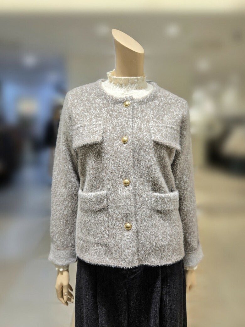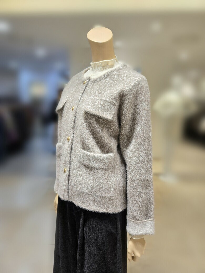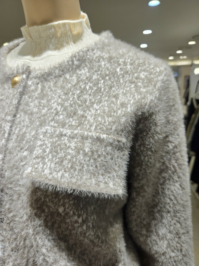 라운드넥 트위드 자켓형 부클 니트 가디건 YK5W-D420