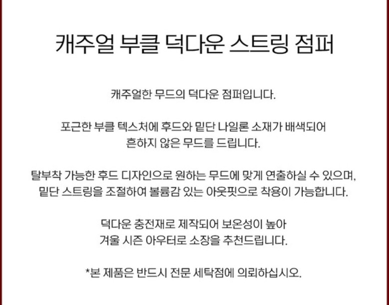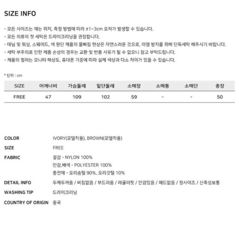 • 처음 배송된 상품상태와 다를 경우(세탁/착용 후 외출하신 경우) 반품이 불가합니다.