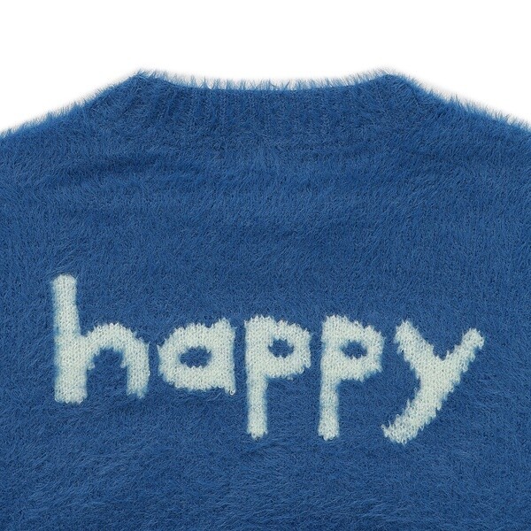 눈에 띄는 컬러 배색과 위트 있는 스마일 자카드 패턴이 귀여운 무드를 더해주며,