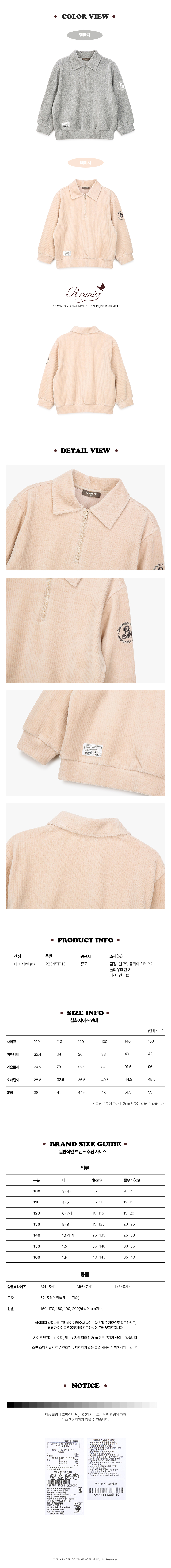 P2545T113_겨울 아동 카라 집업 기모 티셔츠