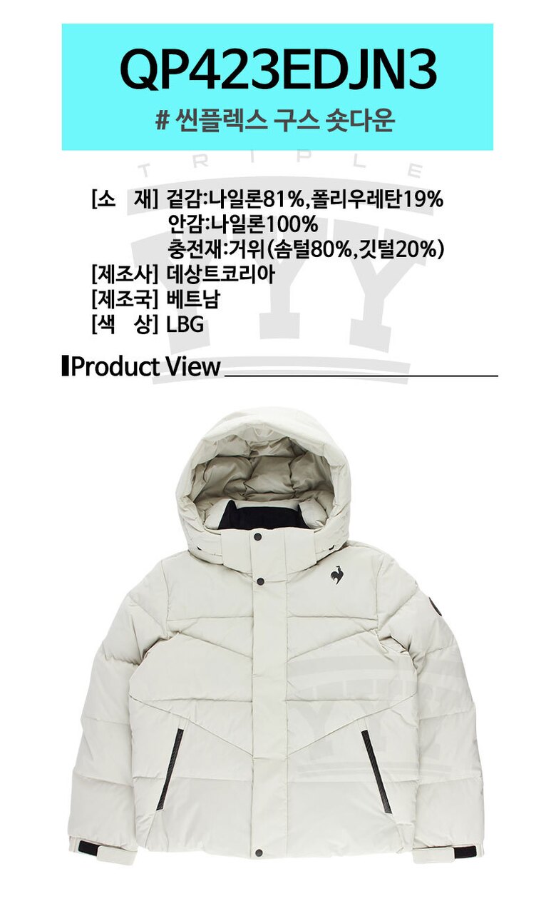 르꼬끄 씬플렉스 구스 숏다운 QP423EDJN3 LBG