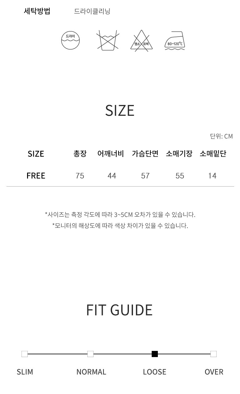 • 처음 배송된 상품상태와 다를 경우(세탁/착용 후 외출하신 경우) 반품이 불가합니다.