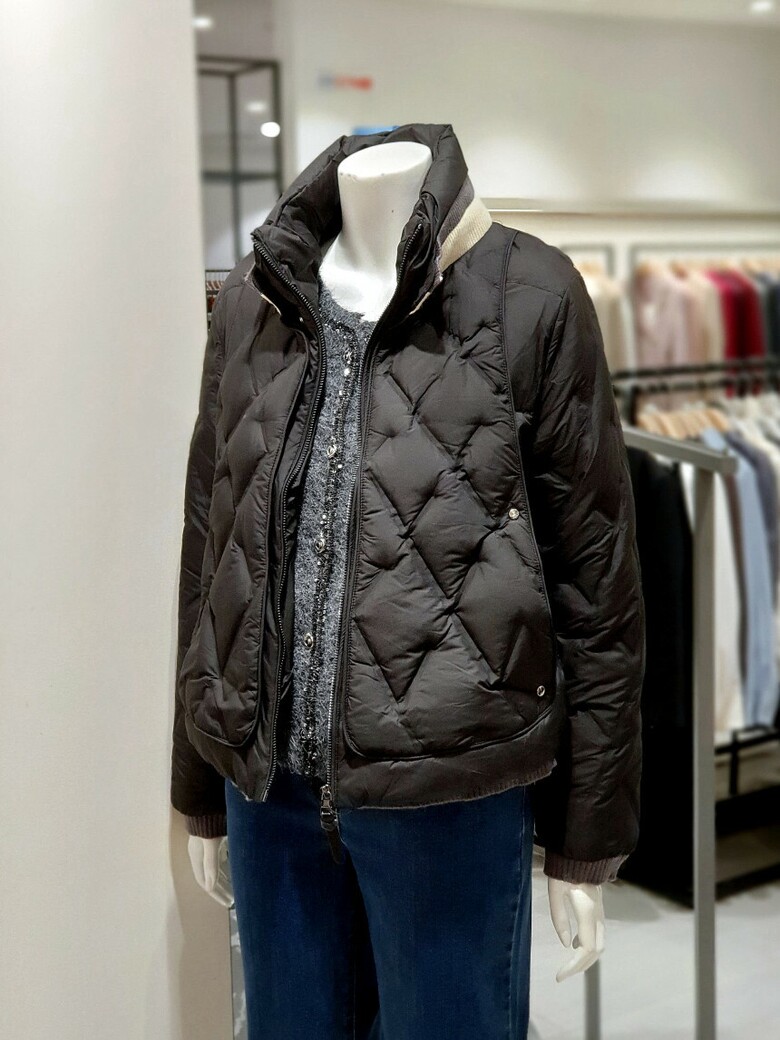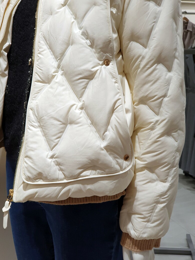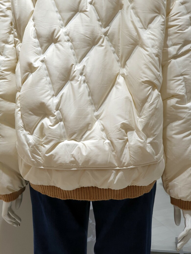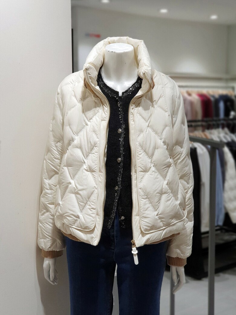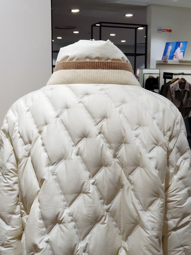 퀼팅 패턴으로 입체감을 더해주는 덕 다운 패딩 재킷입니다.