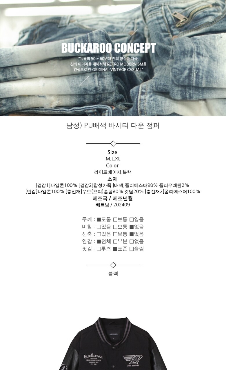 [버커루] 남성) PU배색 바시티 다운 점퍼 (B244DW440P)