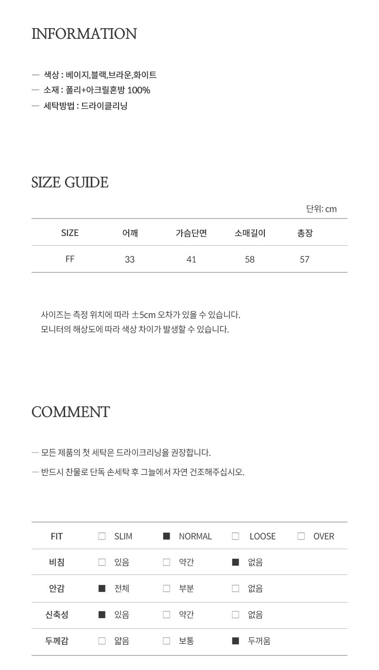 • 처음 배송된 상품상태와 다를 경우(세탁/착용 후 외출하신 경우) 반품이 불가합니다.