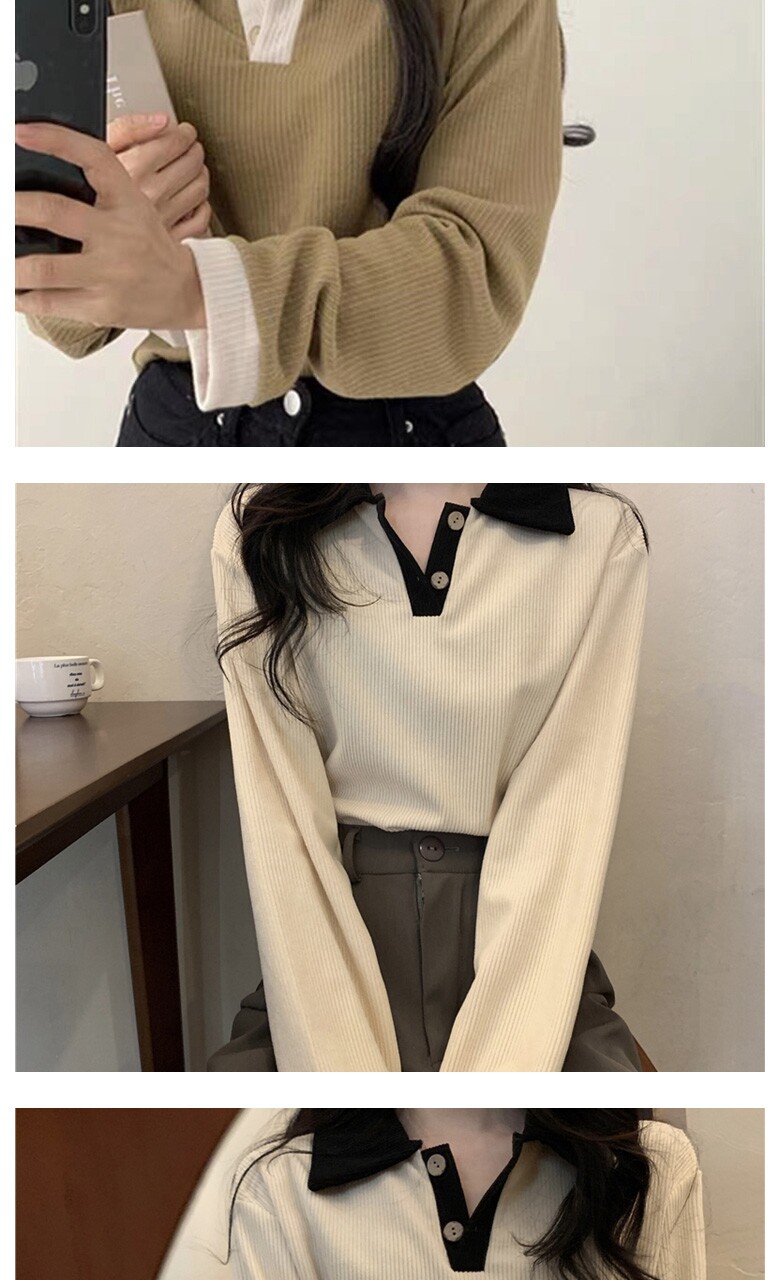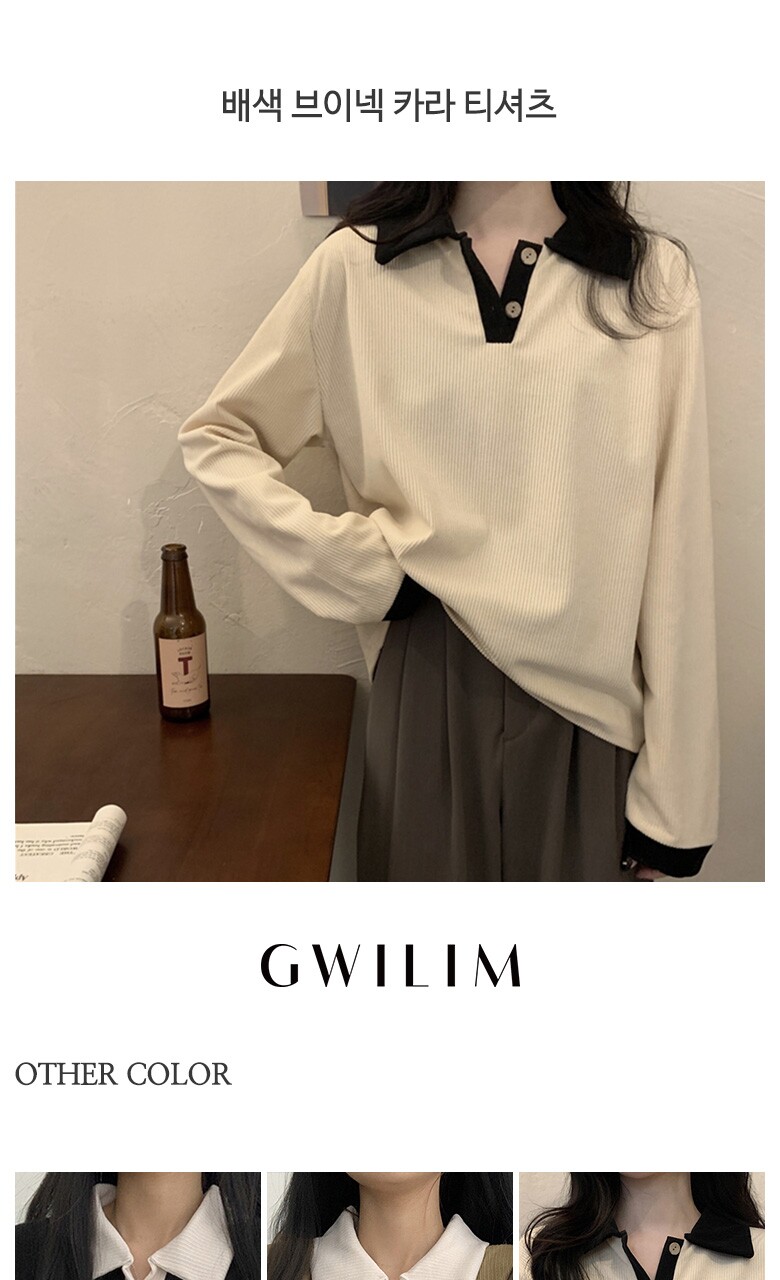 (귈림) 배색 브이넥 카라 티셔츠(G4WTS010P)