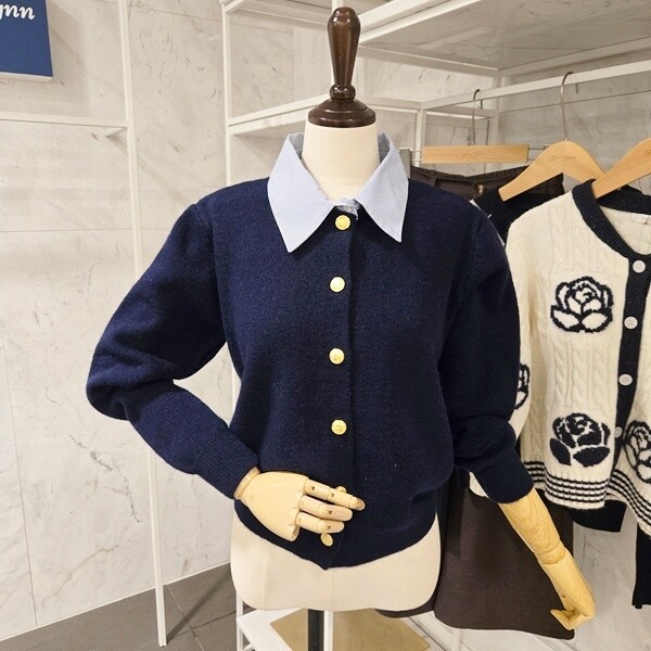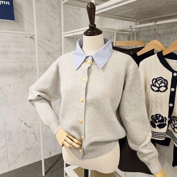 F5CKN503A_셔츠 카라 배색 가디건