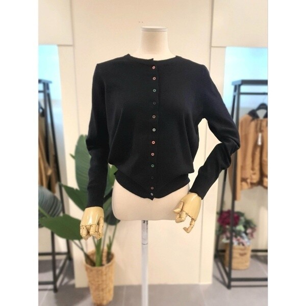 KN_컬러 단추 가디건 블랙