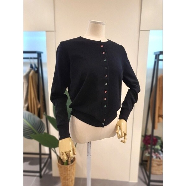컬러풀한 버튼이 포인트인 기본 라운드넥 가디건입니다.