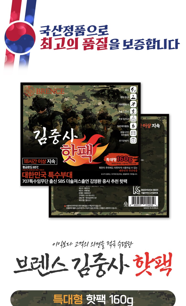 | 1. 품명 및 모델명 | 김중사 핫팩 20개입 |