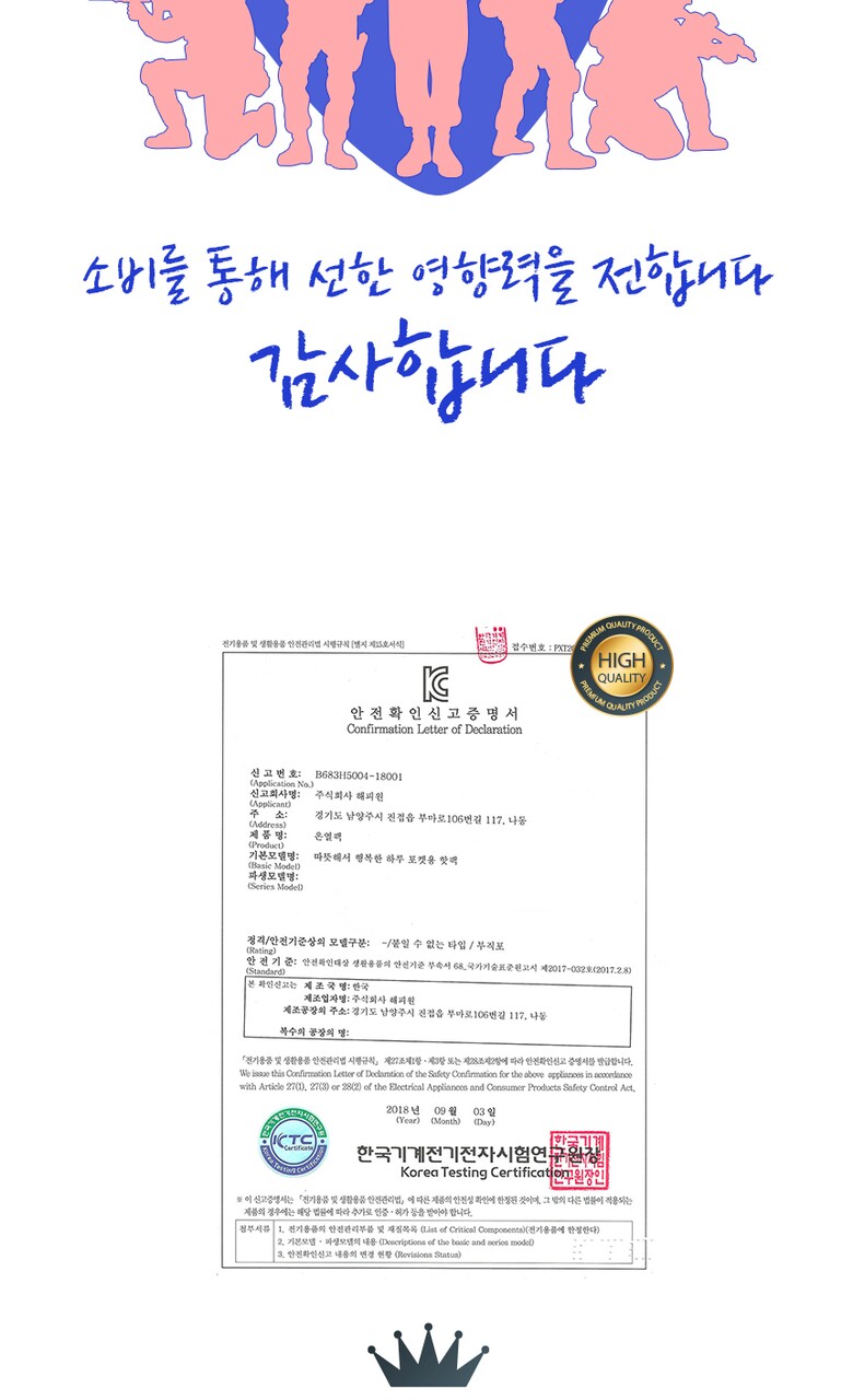 상품불량에 의한 반품, A/S, 품질보증 및 피해보상 등에 관한 사항은 소비자 분쟁해결기준(공정거래위원회 고시) 구매자가 미성년자인 경우에는 상품 구입시 법정대리인이 동의하지 아니하면 미성년자 본인 또는 법정대리인이 구매취소 할 수 있습니다. |
