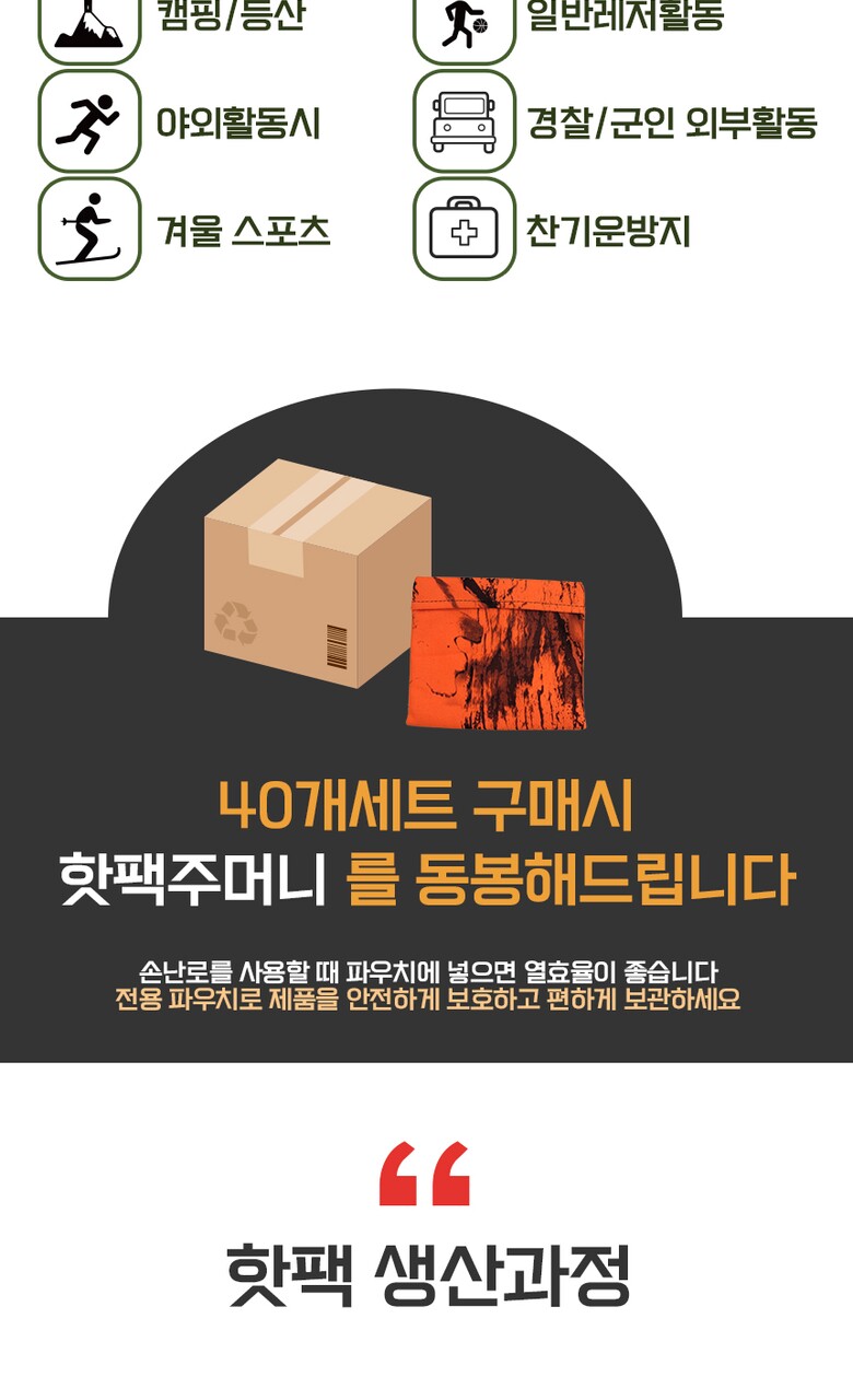 2025년10월 국내생산 김중사 핫팩 대용량 160g 20개입