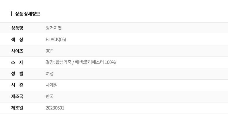 | 2. 소재 | 겉감:합성가죽/배색:폴리에스터100% |