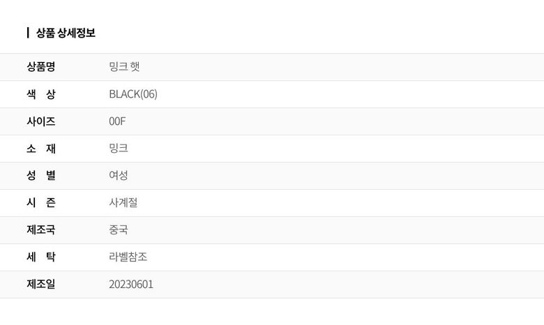 | 2. 소재 | 밍크 |