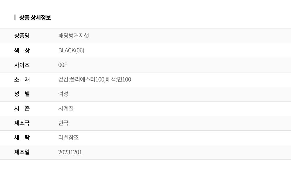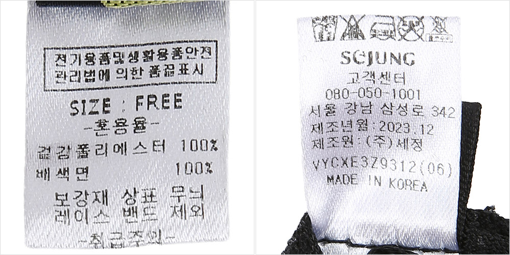 | 2. 소재 | 겉감:폴리에스터100% 배색:면100% |