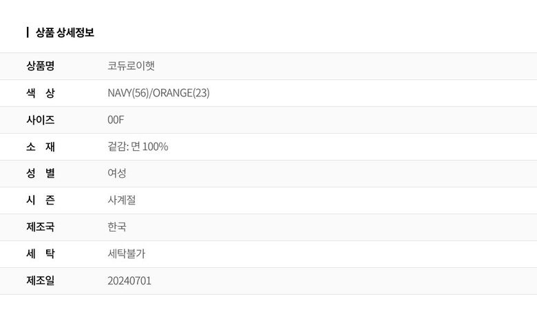 | 2. 소재 | 겉감: 면 100% |