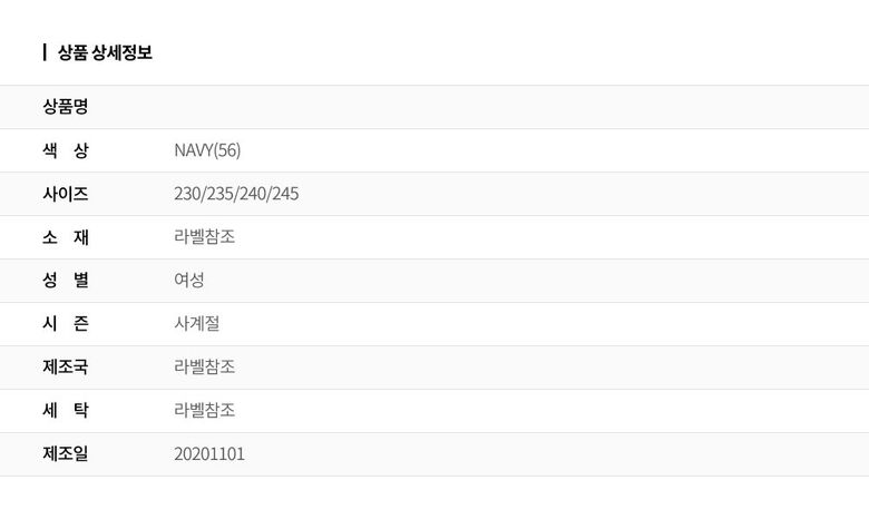 | 2. 색상 | 색상:NAVY(56) |