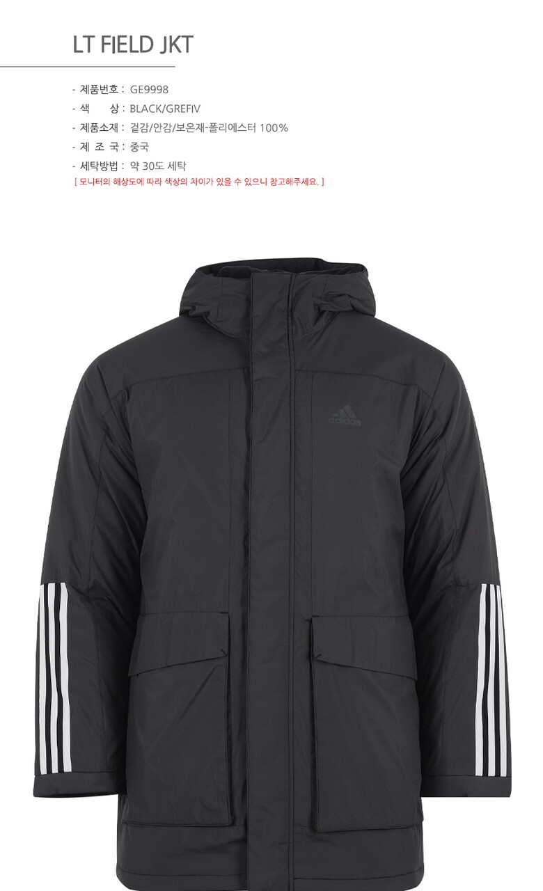 아디다스 남성 라이트 필드 후드 자켓 패딩 점퍼 GE9998