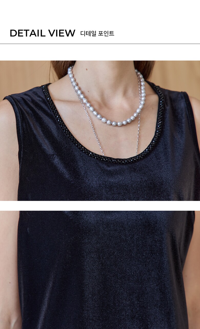 네크라인을 따라 섬세하게 더해진 비즈 장식이