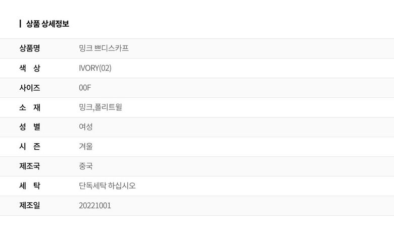| 2. 소재 | 밍크,폴리트윌 |