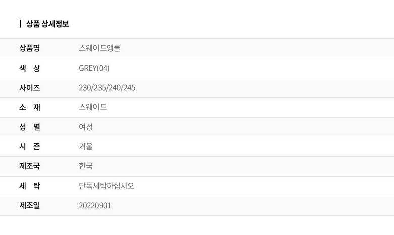 1. 제품 소재 (운동화인 경우에는 겉감, 안감을 구분하여 표시) 스웨이드