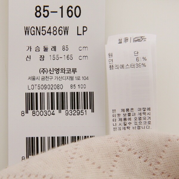 | 6. 세탁방법 및 취급시 주의사항 | 1.속옷은 중성세제를 이용하여 단독 손세탁하시기를 권합니다2.세탁전 제품에 부착된 라벨의 세탁표시를 확인 바랍니다3.세탁시 세제를 세탁물에 직접뿌리는 것은 금물입니다4.탈수,건조기 사용을 금합니다 |