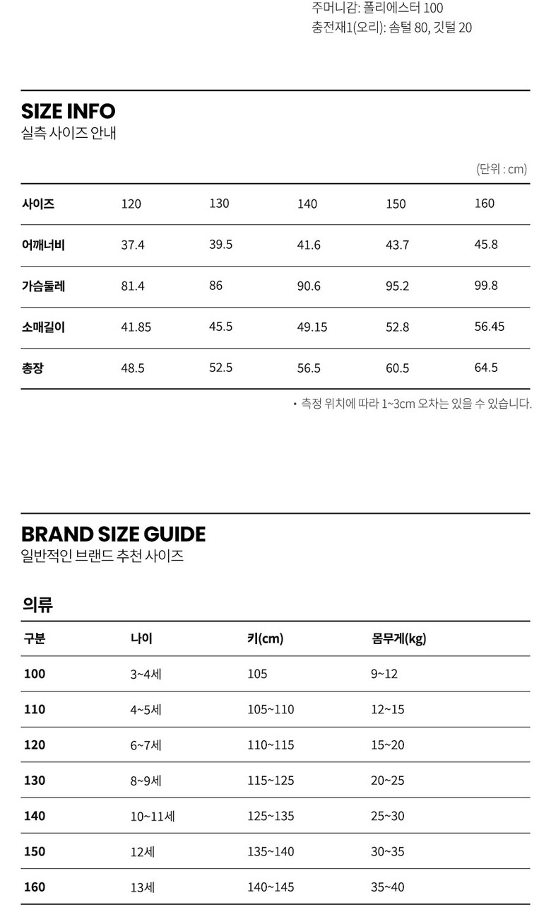 | 1. 제품 소재 (섬유의 조성 또는 혼용률을 백분율로 표시, 기능성인 경우 성적서 또는 허가서) | 상품상세참조 |