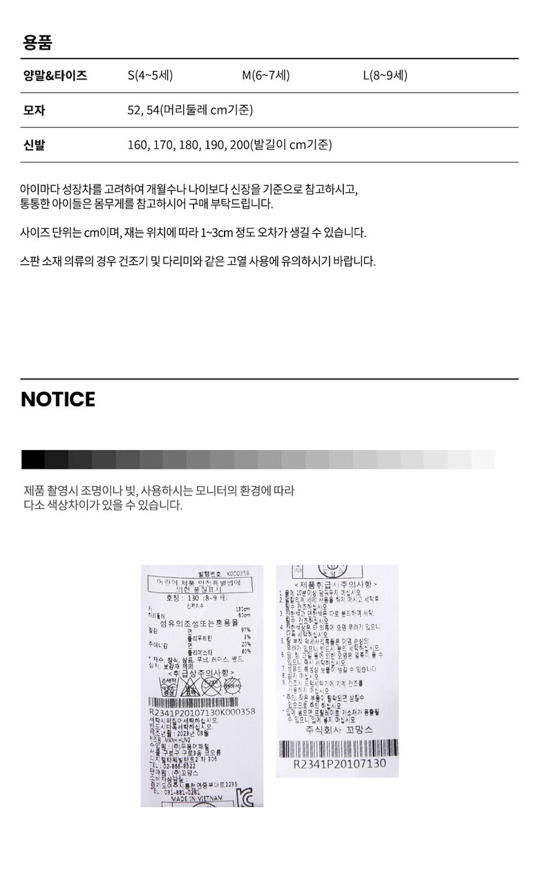 | 기타 기준 사항 | 상품불량에 의한 반품, A/S, 품질보증 및 피해보상 등에 관한 사항은 소비자 분쟁해결기준(공정거래위원회 고시) 구매자가 미성년자인 경우에는 상품 구입시 법정대리인이 동의하지 아니하면 미성년자 본인 또는 법정대리인이 구매취소 할 수 있습니다. |
