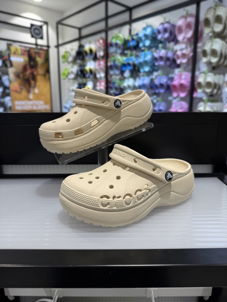 크록스 바야 플랫폼 클로그 208186-11S 윈터 화이트 베이지