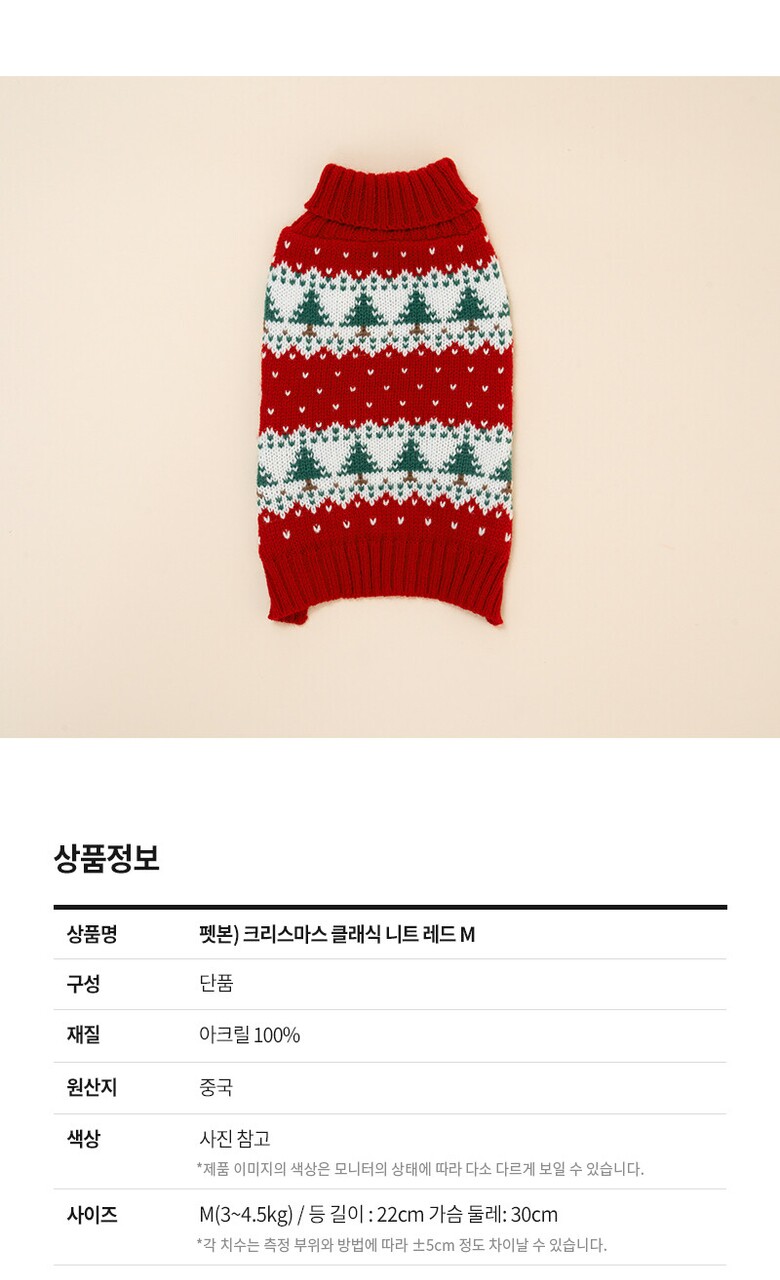 모던하우스 펫본 크리스마스 클래식 니트 레드 M PT0125007