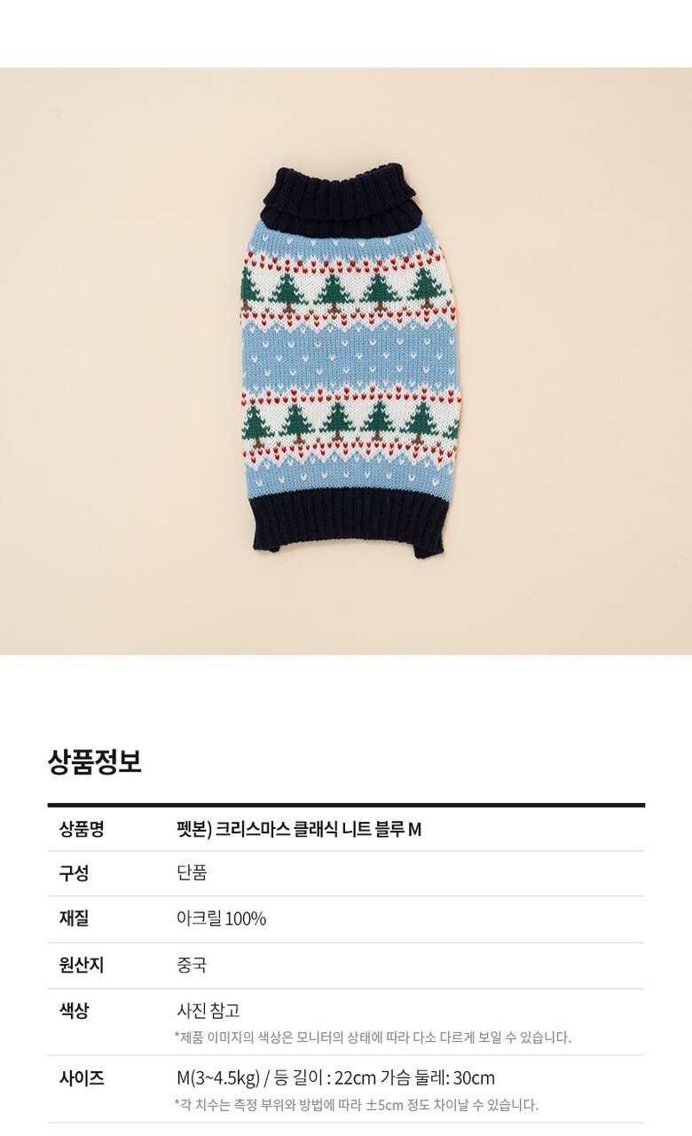 모던하우스 펫본 크리스마스 클래식 니트 블루 M PT0125009
