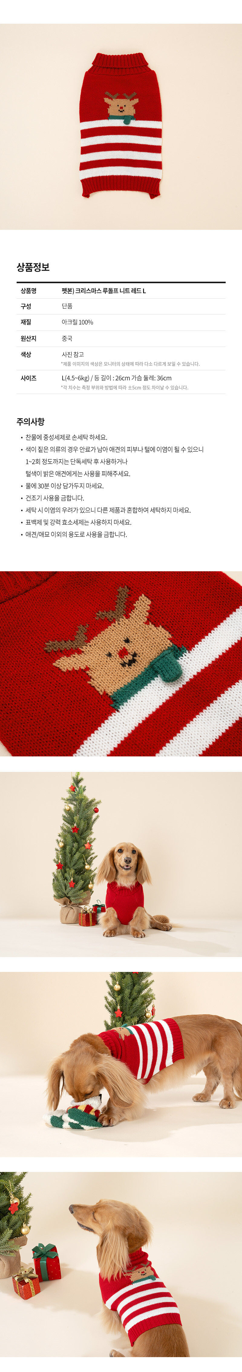 모던하우스 펫본 크리스마스 루돌프 니트 레드 L PT0125015