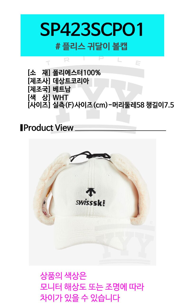 데상트 플리스 귀달이 볼캡 SP423SCPO1 WHT