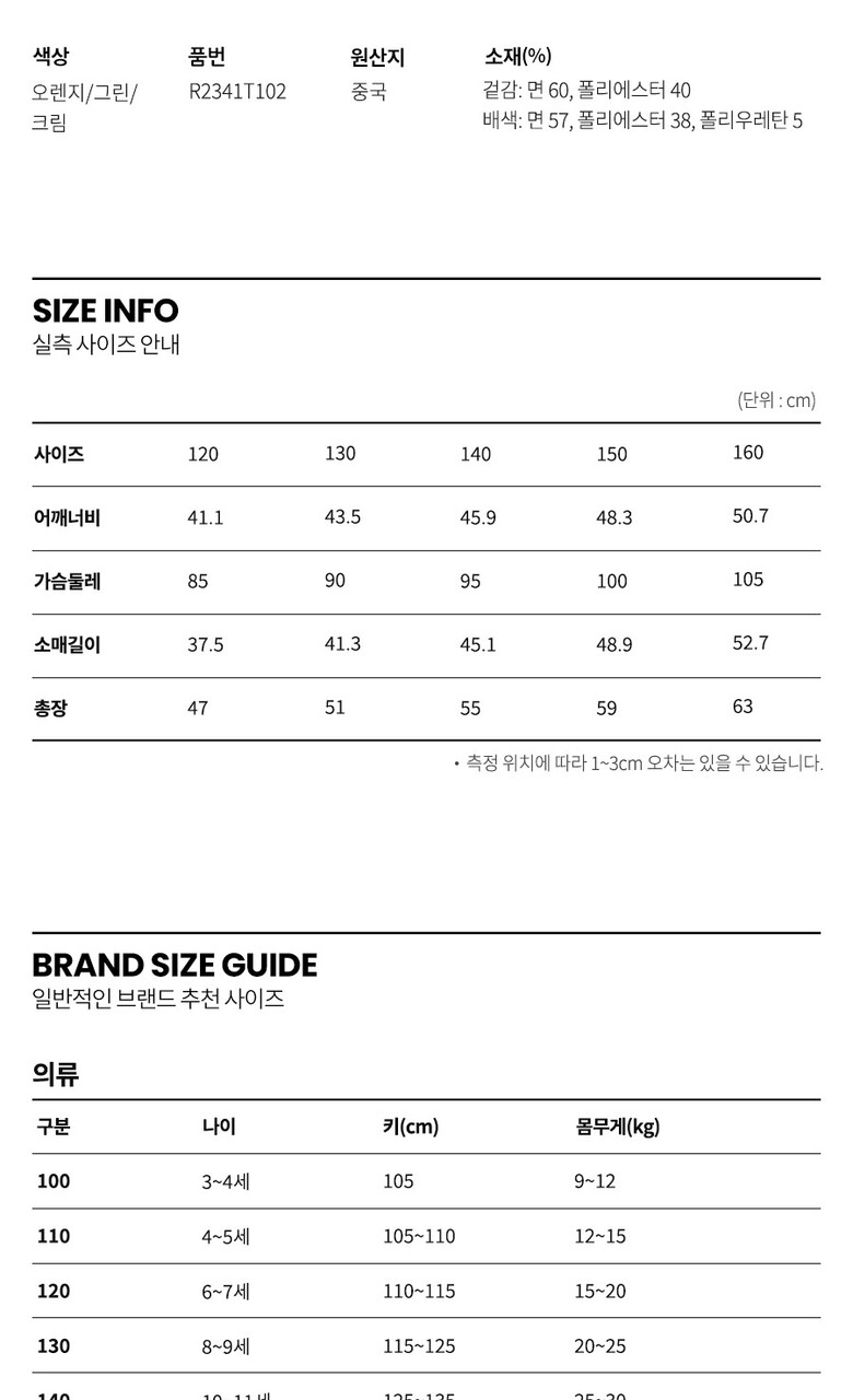 | 1. 제품 소재 (섬유의 조성 또는 혼용률을 백분율로 표시, 기능성인 경우 성적서 또는 허가서) | 상품상세참조 |