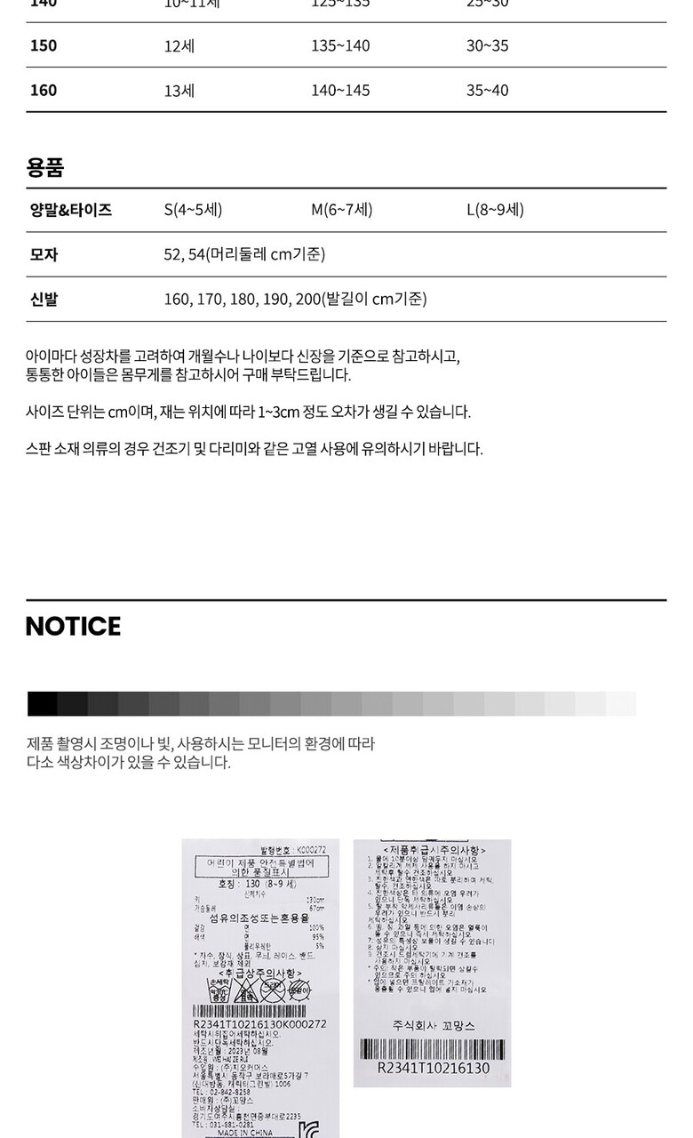 상품불량에 의한 반품, A/S, 품질보증 및 피해보상 등에 관한 사항은 소비자 분쟁해결기준(공정거래위원회 고시) 구매자가 미성년자인 경우에는 상품 구입시 법정대리인이 동의하지 아니하면 미성년자 본인 또는 법정대리인이 구매취소 할 수 있습니다. |