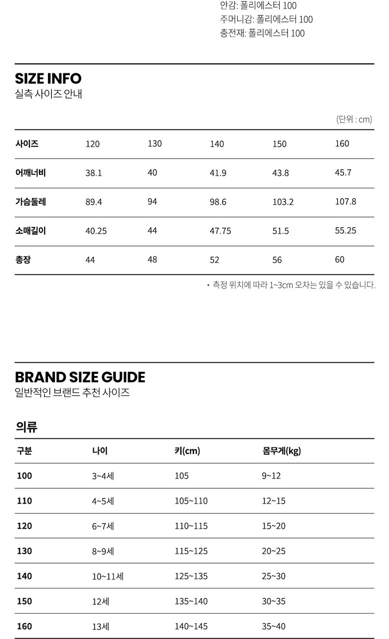 | 1. 제품 소재 (섬유의 조성 또는 혼용률을 백분율로 표시, 기능성인 경우 성적서 또는 허가서) | 상품상세참조 |