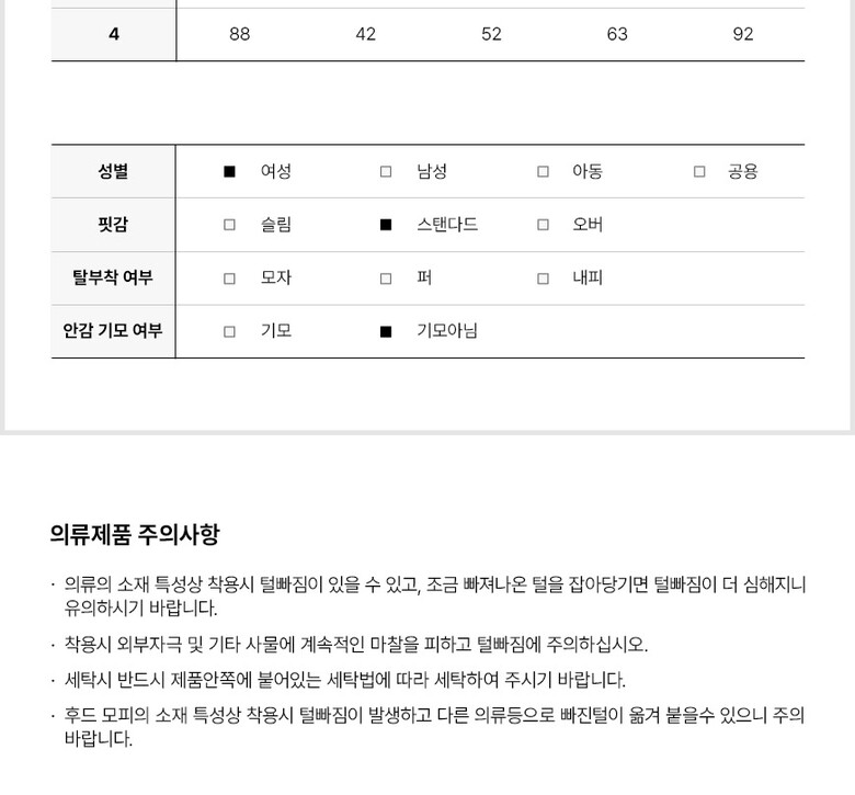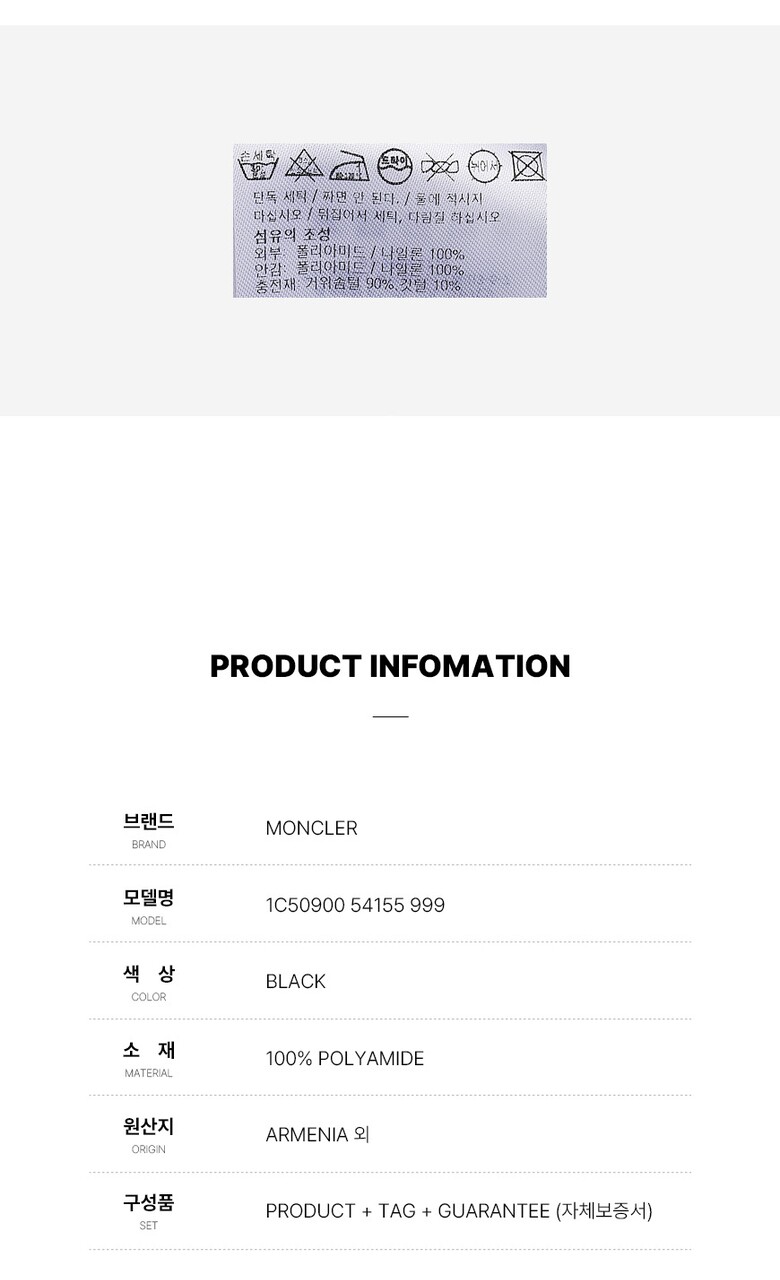 | 6. 세탁방법 및 취급시 주의사항 | 반드시 라벨에 부착된 세탁방법으로 세탁해 주십시오. |